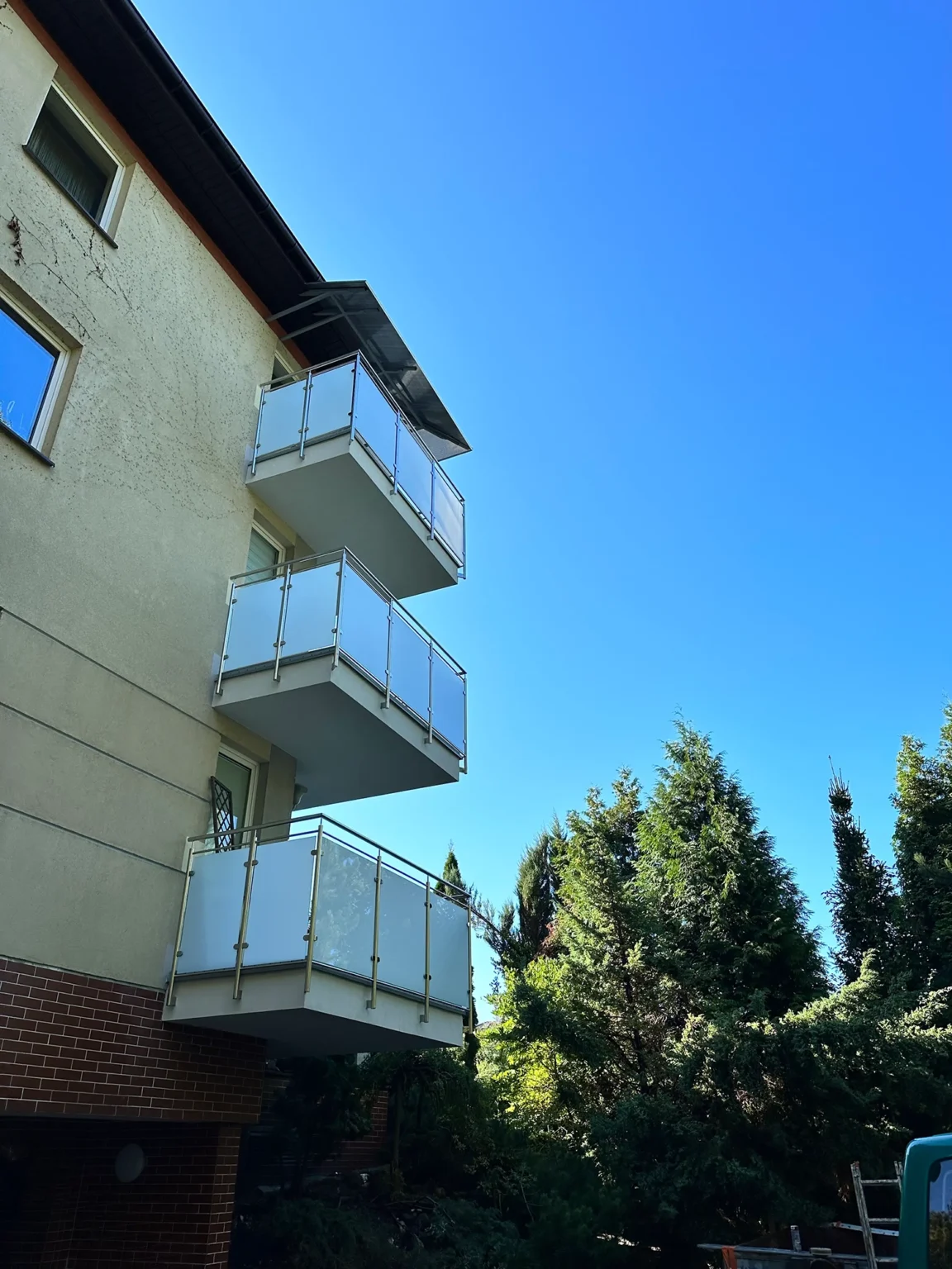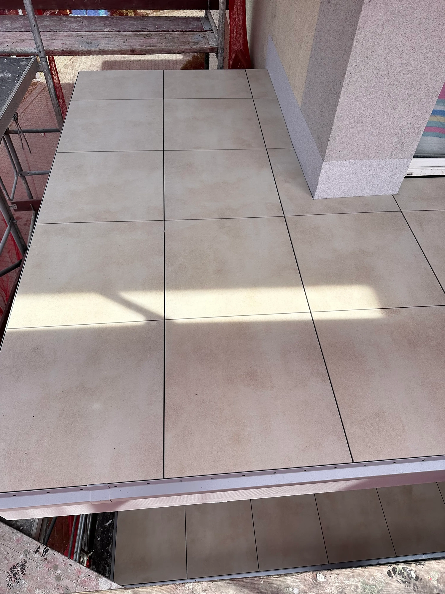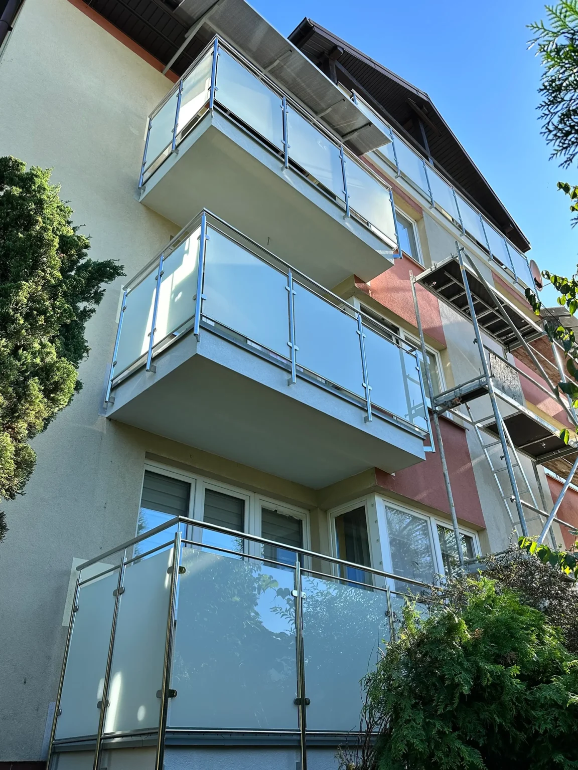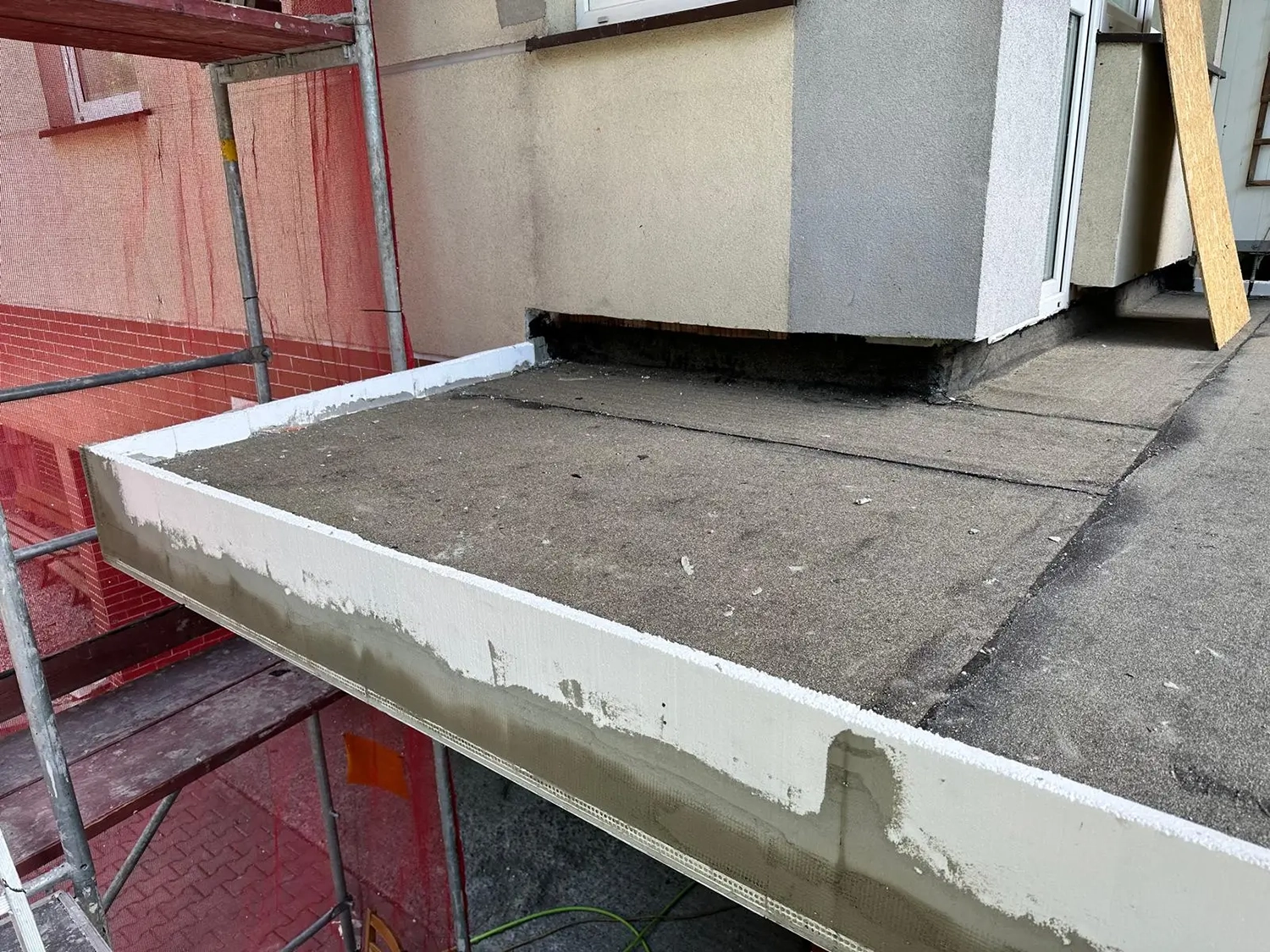 Firma AT Wróbel przeprowadziła remont zgodnie z najwyższymi standardami budowlanymi, dbając o precyzję wykonania oraz komfort mieszkańców. Prace rozpoczęto od montażu rusztowania i usunięcia starych warstw posadzek aż do płyty nośnej balkonów. Następnie wykonano nową warstwę spadkową oraz kompleksowe docieplenie płyt betonowych, co zapewniło odpowiednią izolację i trwałość konstrukcji. Kolejnym etapem było wykonanie nowych wylewek oraz gruntowanie i zastosowanie izolacji Resitrix EPDM, która zwiększa odporność na warunki atmosferyczne. Na tak przygotowanej powierzchni zamontowano gresowe płytki Star Gres Spectra Grey na podkładkach IPS. Finalnym etapem był montaż nowoczesnych aluminiowych obramowań, nierdzewnych balustrad ze szklanym wypełnieniem oraz zadaszeń balkonów na najwyższych kondygnacjach. Dzięki kompleksowemu podejściu i precyzyjnej organizacji wszystkie prace zostały ukończone terminowo i zgodnie z zasadami sztuki budowlanej.