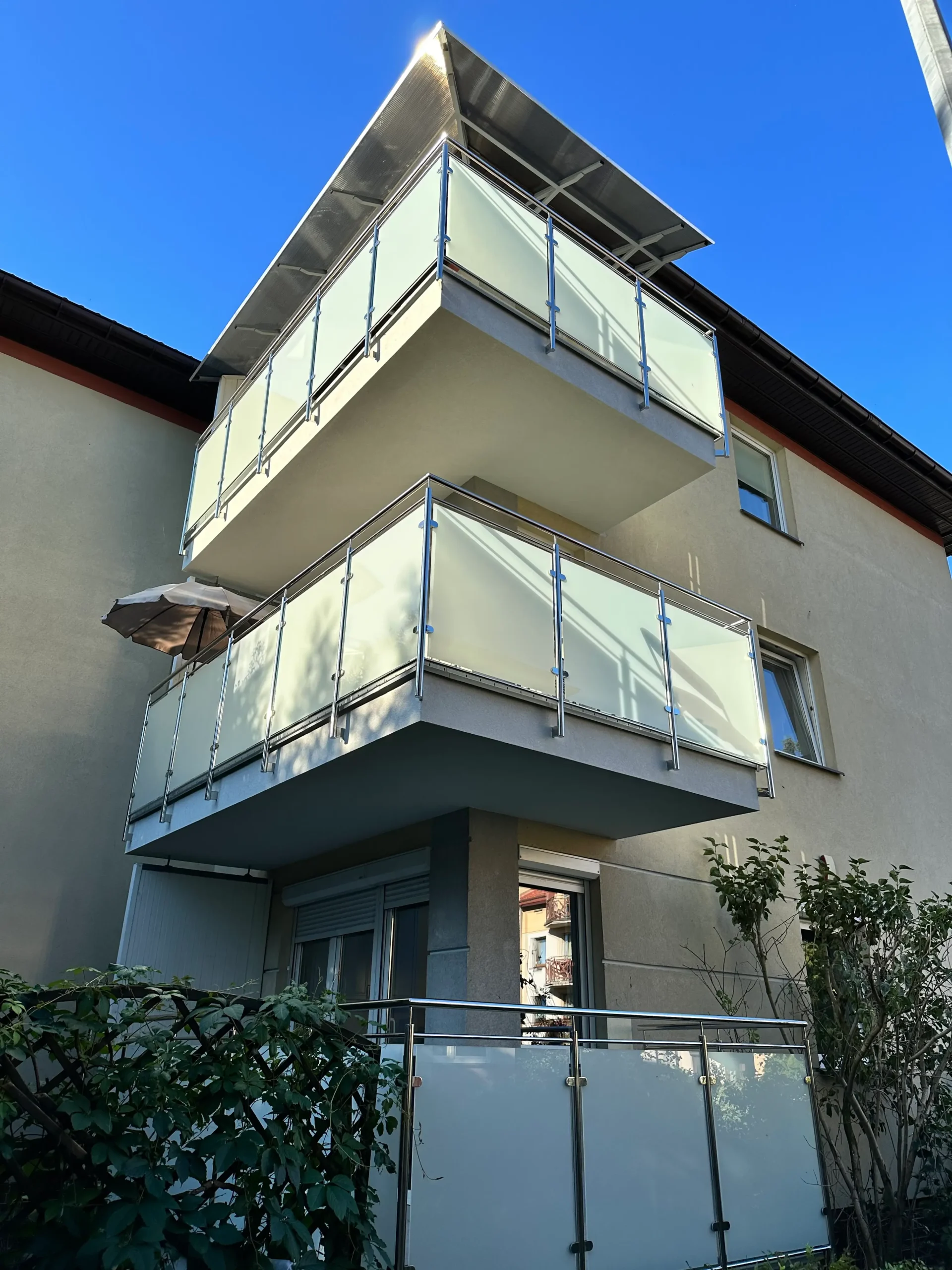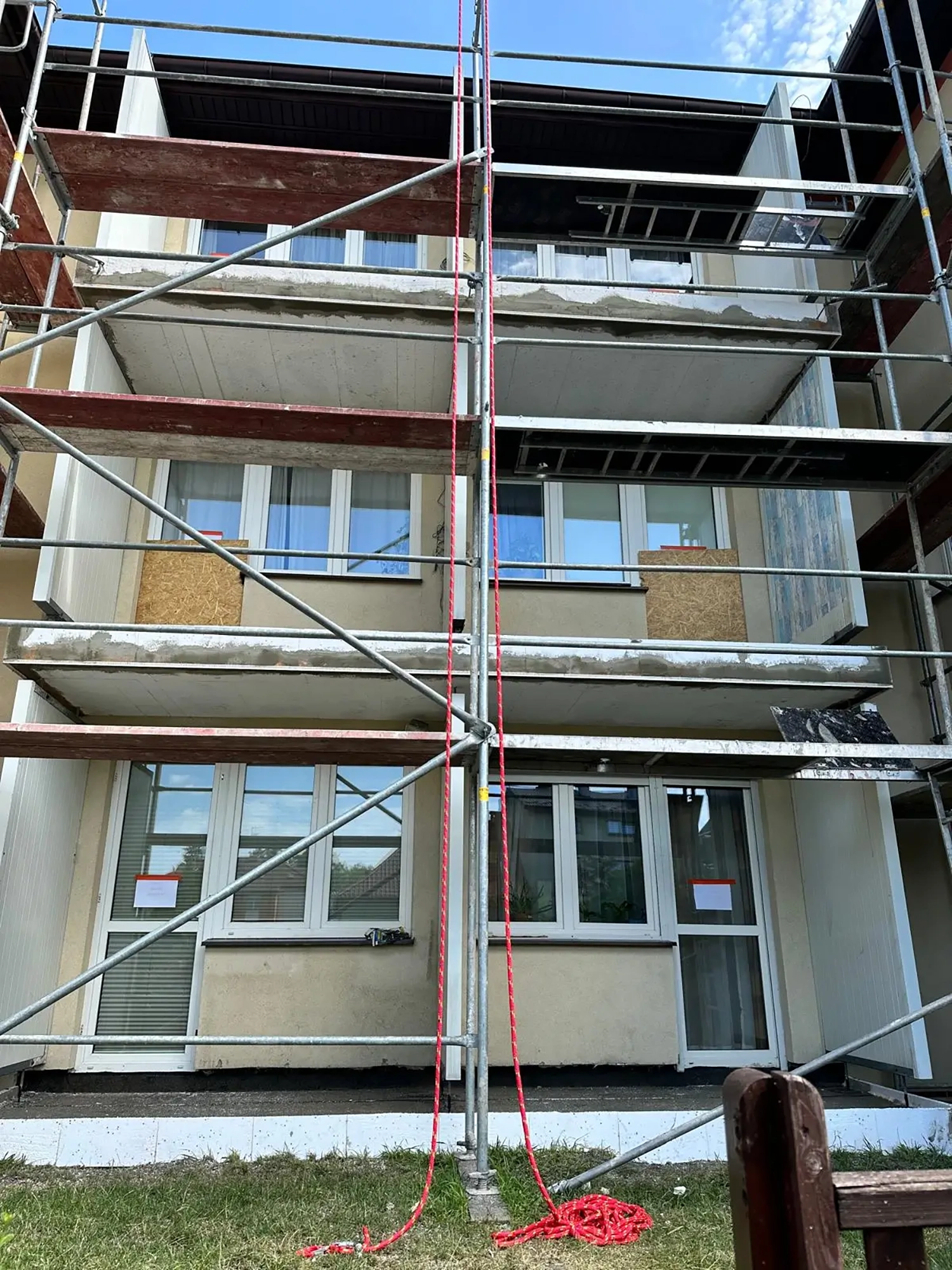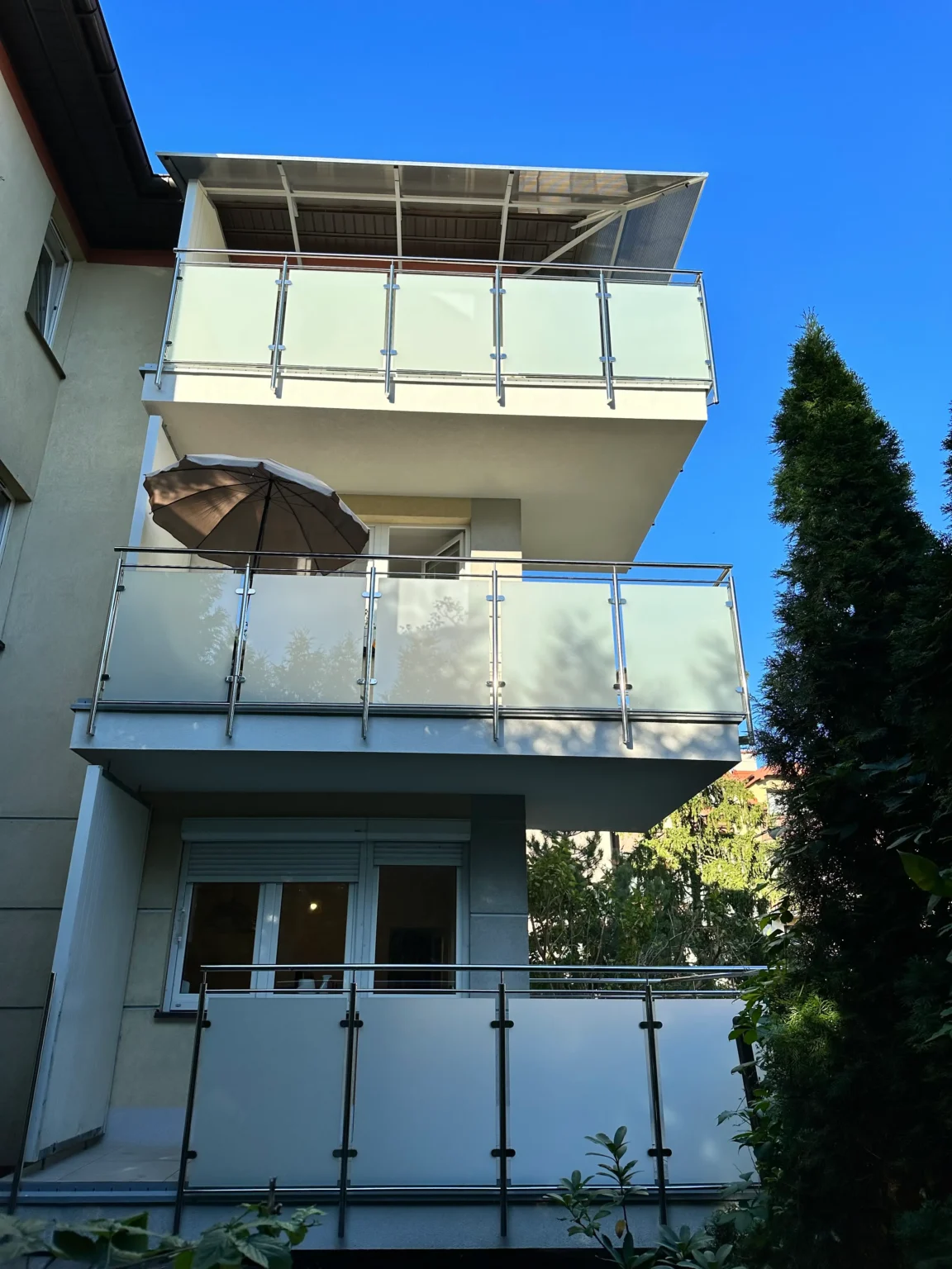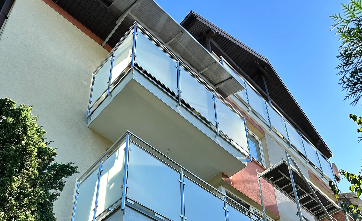Firma AT Wróbel przeprowadziła remont zgodnie z najwyższymi standardami budowlanymi, dbając o precyzję wykonania oraz komfort mieszkańców. Prace rozpoczęto od montażu rusztowania i usunięcia starych warstw posadzek aż do płyty nośnej balkonów. Następnie wykonano nową warstwę spadkową oraz kompleksowe docieplenie płyt betonowych, co zapewniło odpowiednią izolację i trwałość konstrukcji. Kolejnym etapem było wykonanie nowych wylewek oraz gruntowanie i zastosowanie izolacji Resitrix EPDM, która zwiększa odporność na warunki atmosferyczne. Na tak przygotowanej powierzchni zamontowano gresowe płytki Star Gres Spectra Grey na podkładkach IPS. Finalnym etapem był montaż nowoczesnych aluminiowych obramowań, nierdzewnych balustrad ze szklanym wypełnieniem oraz zadaszeń balkonów na najwyższych kondygnacjach. Dzięki kompleksowemu podejściu i precyzyjnej organizacji wszystkie prace zostały ukończone terminowo i zgodnie z zasadami sztuki budowlanej.